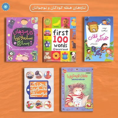 | رديف | عنوان | پدیدآورنده | گروه سنی | | 1 | O men, stand before the scales! | ruh afza, Said | د | | 2 | First 100 [one hundred] words | | الف | | 3 | الاكلنگ | خلعت بري، فريده | ب | | 4 | اين درخت من است! | تالك، اوليويه | الف - ب | | 5 | بدن تو مال خودته! | اسپلمن، كورنليا | ب | | 6 | جهانگرد قلابي | گوتمن، دن | ب - ج | | 7 | فرهنگ تصويري موسيقي | بومون، اميلي | ب - ج | | 8 | كاردستي هاي مخصوص جشن و بازي | هانتر، سوزان | ب - ج | | 9 | كش بازي | عليزاده لوشابي، زينب | ب | | # | مامان تو بهتريني! | د گروت، دايان | ب |
