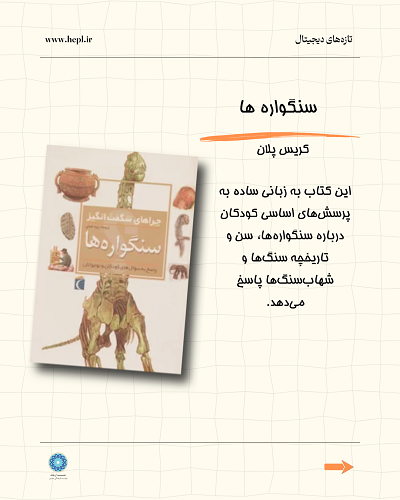 سنگواره ها مؤلف: کریس پلان (این کتاب به زبانی ساده به پرسشهای اساسی کودکان درباره سنگوارهها، سن و تاریخچه سنگها و شهابسنگها پاسخ میدهد.)